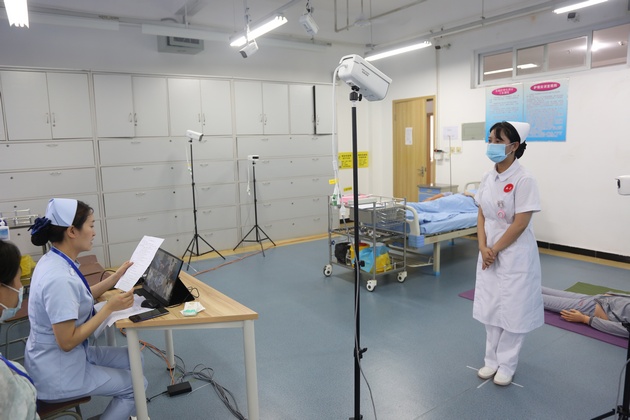 此次考核分为临床思维理论考核和操作考核。临床思维理论测试,重点考核员工临床思维能力。操作考核共设置10个考场,涵盖27项护理操作项目,所有项目、案例、理论测试、评分标准由全国专家委员会统一制定,员工根据临床案例完成3项基本操作和1项口述内容回答。同时本次考试还采用现场录制,由考官结合所考项目的具体考核标准,对考生的操作能力、临床思维能力及人文关怀等进行全面的综合评价。整个考试过程安排井然有序,得到了国家卫健委领导和专家的一致赞许。