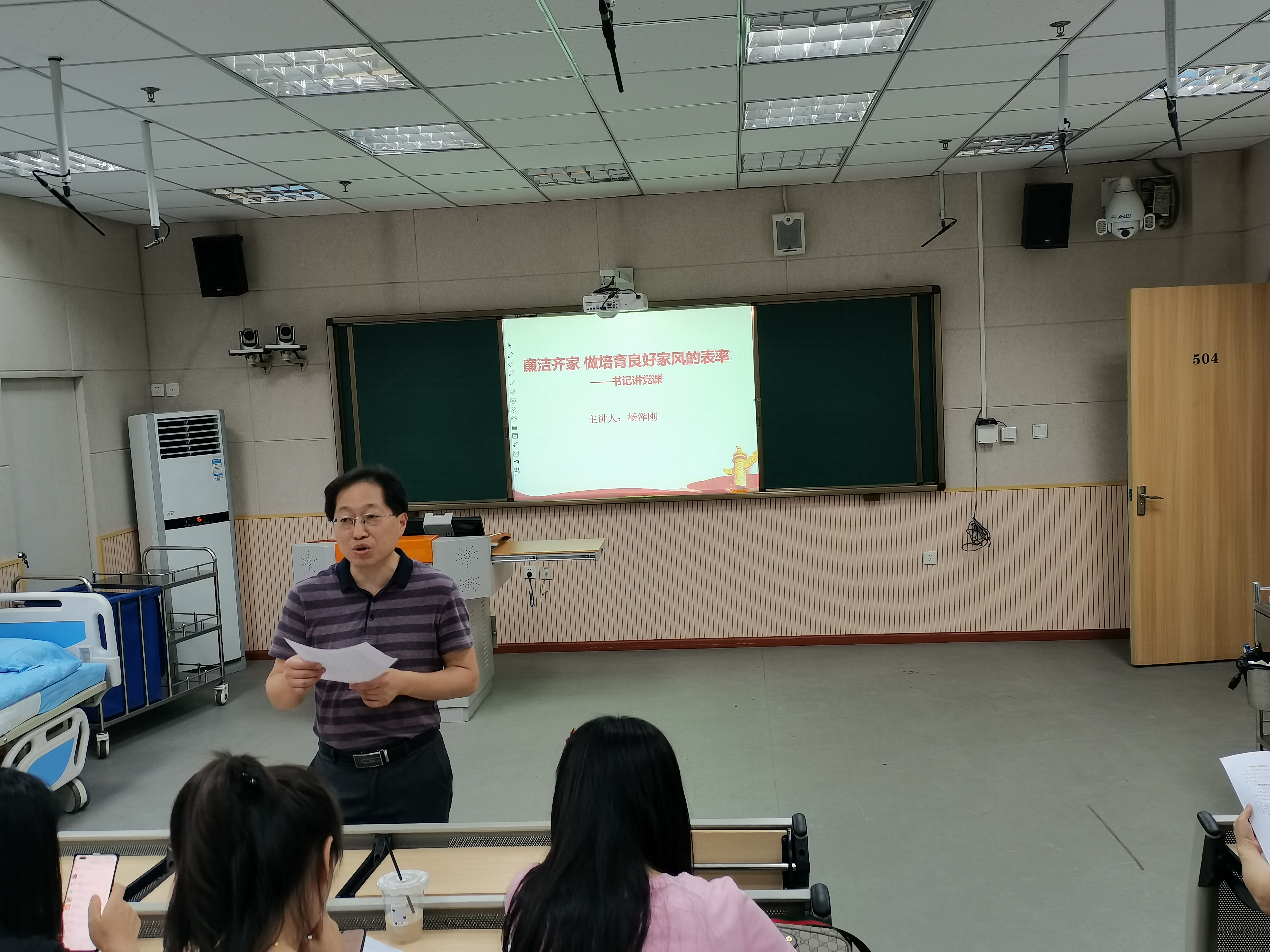 6月21日下午,太阳集团tyc33455党总支书记杨泽刚在青年路校区实训楼504教室为太阳集团tyc33455全体教职工开展了主题为《廉洁齐家 做培育良好家风的表率》的专题党课。