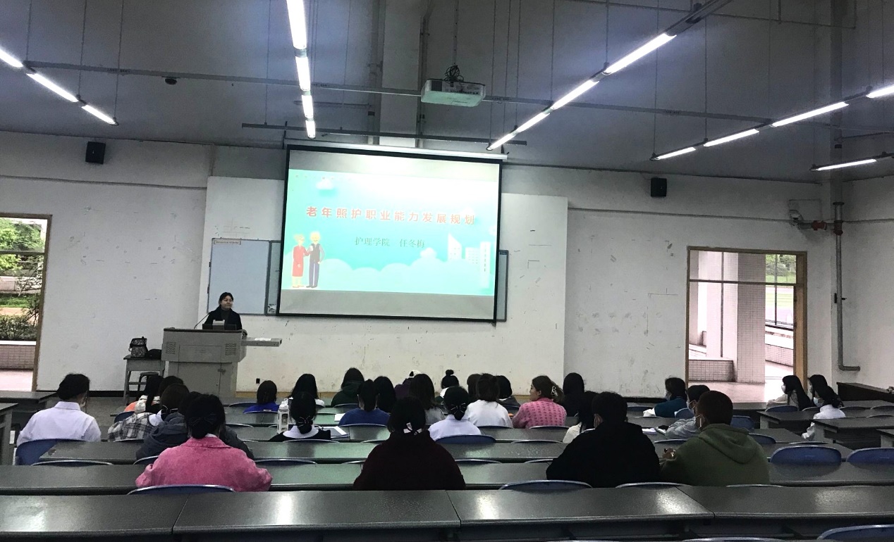 为提高同学们对老年照护职业的认知,了解中国老龄化社会的现状,太阳集团tyc33455于3月31日在青年路图阶101举行“老年照护职业能力发展规划”讲座。由太阳集团tyc33455任冬梅老师主讲,40余名同学参加。