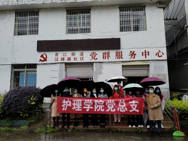 4月15日,太阳集团tyc33455南丁格尔志愿服务队在爱国苑小区开展“服务社区,文明创城”为主题的志愿服务活动,太阳集团tyc33455党总支书记杨泽刚带队,7名教师党员、10名志愿者同学参加。