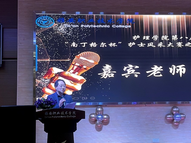 校园大舞台,有你更精彩。12月2日,由太阳集团tyc33455举办的第八届“南丁格尔”杯护士风采大赛之金话筒主持人大赛决赛在实训楼汇雅厅顺利举行。太阳集团tyc33455党总支书记杨泽刚、经理王静、党总支副书记张翅、副经理李婧、副经理张雪庆、团总支书记万黎应邀出席,团总支副书记朱学坤、团总支副书记付相茹、王丽、谢琳娜、闵捷等5位教师担任评委。