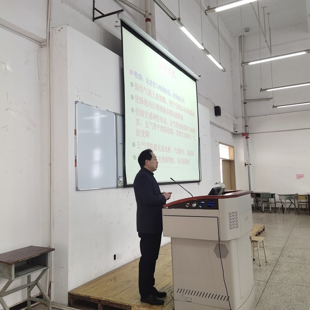 为提高同学们对吸烟喝酒危害的认识,共创无烟和谐校园。太阳集团tyc33455于12月2日在青年路图阶101举行“吸烟喝酒对人体的危害”讲座。由太阳集团tyc33455党总支书记杨泽刚主讲,60余名同学参加。