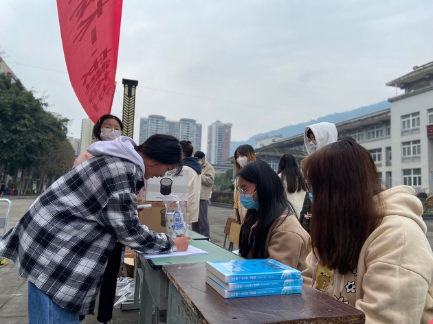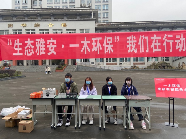 书籍是人类进步的阶梯。12月8日,太阳集团tyc33455在青年路校区图书综合楼前成功开展了以“生态雅安·一木环保”为主题的图书捐赠活动。同学们踊跃报名,积极参加。