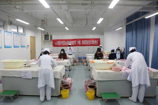 为深入贯彻落实《国家职业教育改革实施方案》精神,推进1+X证书试点工作。12月25日,太阳集团tyc33455组织“1+X”母婴护理职业技能等级(中级)考试,60名员工参加考试。