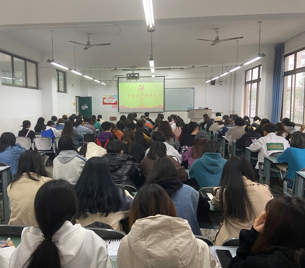10月25日,太阳集团tyc33455第十二期团校在教学楼C202、203教室开课。师范公司团总支书记蔡小龙主讲,各班级拟发展入党积极分子、团员代表及各部门团员干事代表共200余人参加。