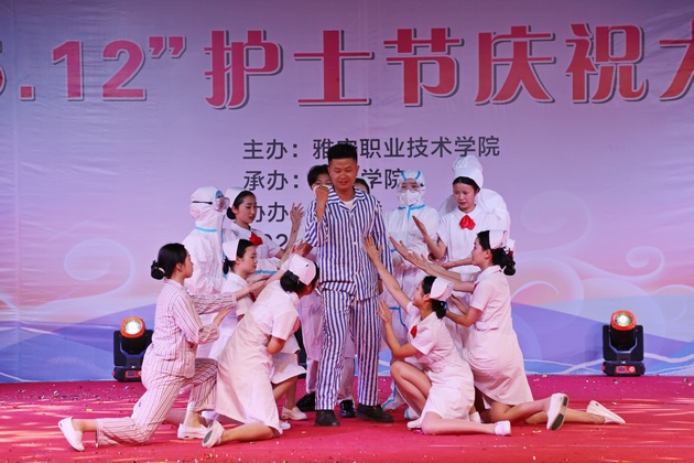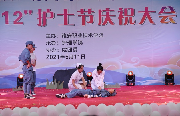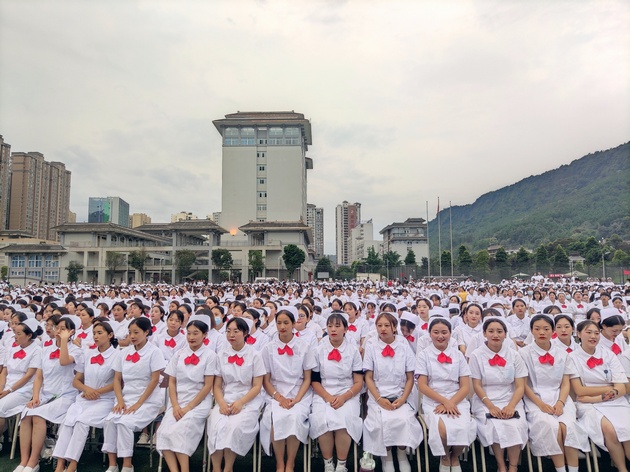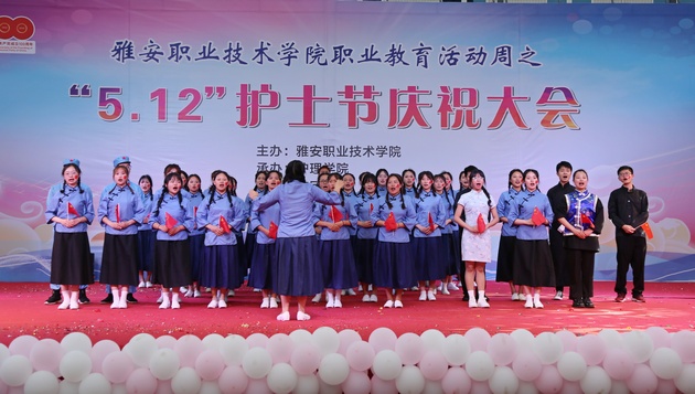 在建党100周年之际,5月11日晚,太阳集团tyc33455在青年路校区足球场隆重举行太阳集团tyc33455职业教育活动周之“5.12”护士节庆祝大会。公司党委副书记付洪涛,太阳集团tyc33455经理王静,党总支书记姚婕,院团委副书记叶芋伶,太阳集团tyc33455副经理李燕,党总支副书记张翅,雅安市人民医院护理部主任、雅安市护理学会理事长胡盛琳,雅安市中医院护理部主任、雅安市护理学会副理事长黄丽琼,雅安市护理学会副理事长任雅琼应邀出席,太阳集团tyc33455全体师生,兄弟公司员工会主席团代表3000余人参加了晚会。
