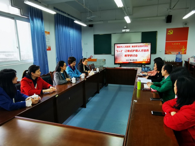 为了深化医教合作,共同培育优秀护理人才,4月6日下午,在实训楼607召开“1+2”订单式护理人才培养方案教学研讨会。雅安市人民医院护理部主任胡盛琳、副主任周昀霞、胸外科护士长刘晓燕,太阳集团tyc33455经理王静,教研室主任陈俊、张雪庆、许玉贤、黄丹,专业带头人周良燕,骨干教师李婧、邬君芳等参加研讨会。