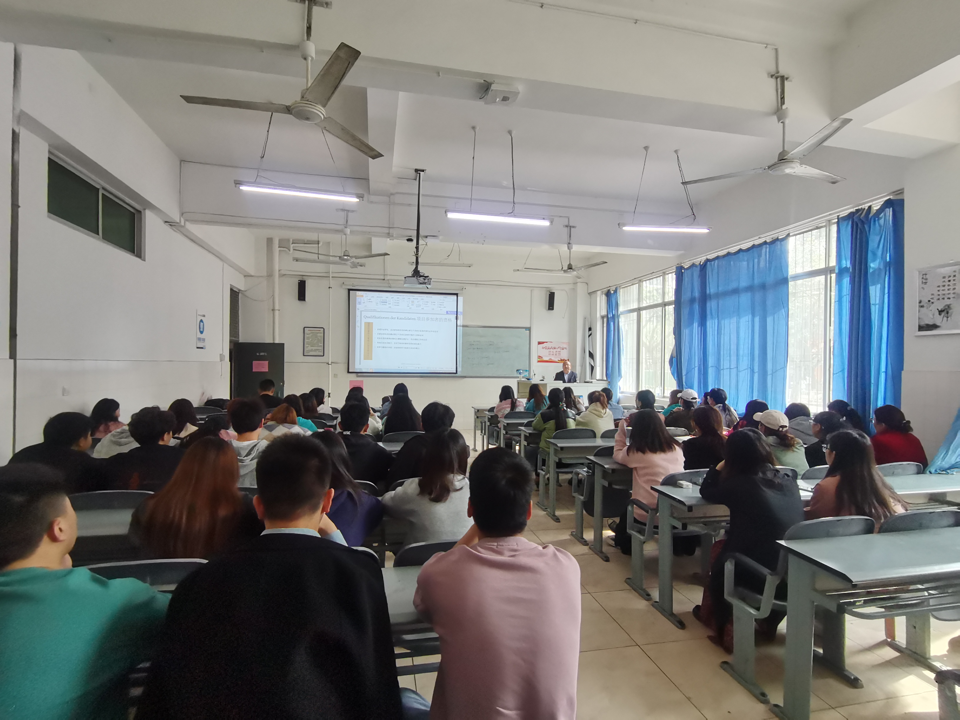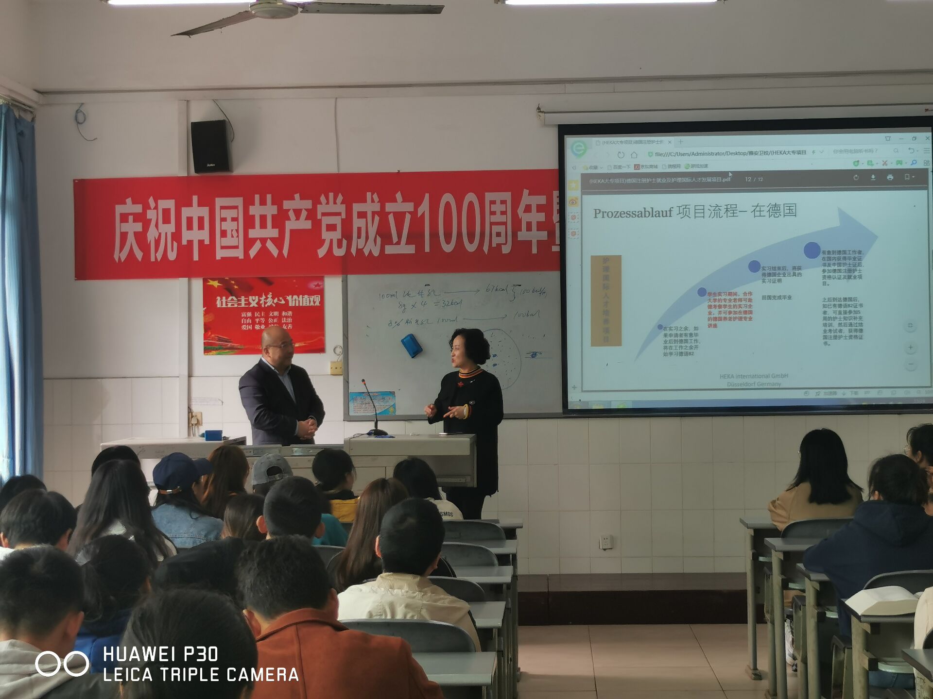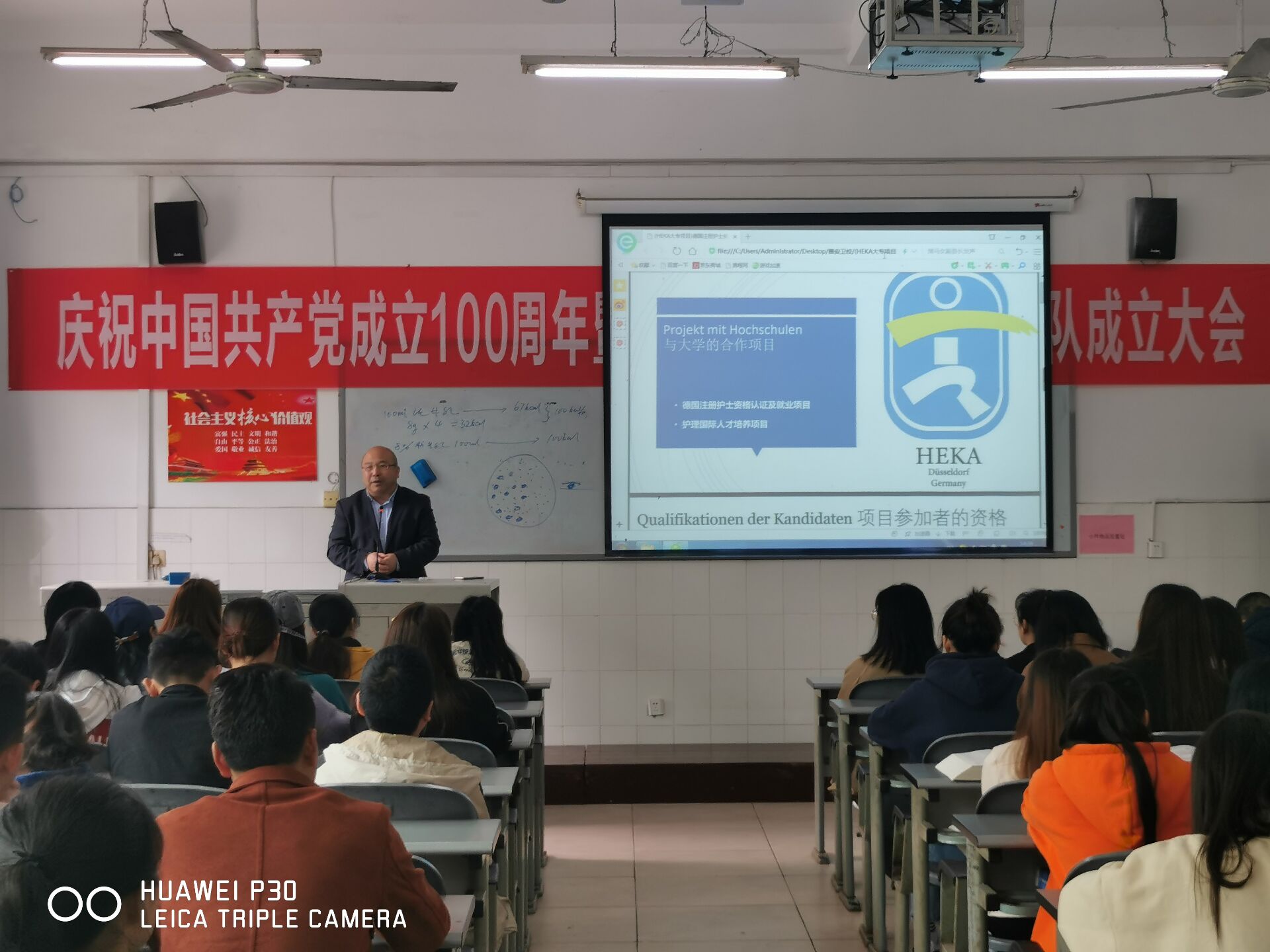 在公司党委的领导和支持下,太阳集团tyc33455与德国亨嘉国际教育有限公司经过前期的沟通协调,本学期启动了中德护理人才培养项目项目,制定了合作计划书。4月14日下午,公司负责人杨杰和项目负责人唐老师一行来到公司,在育才路校区实验楼101举行了项目启动宣讲会,并组织了2021届护理专业毕业生160余人和辅导员、学管老师参加。