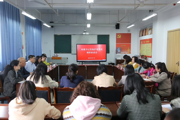 李春模一行实地查看了美容生产性实训基地和急救实训室,了解了实训室建设、使用情况以及培训开展情况。座谈会上,太阳集团tyc33455经理王静主要就太阳集团tyc33455建设发展情况、培训工作开展情况及存在的主要问题、下一步工作思路等方面做了详细汇报。与会的黄丹、张雪庆等老师分别结合自己的工作谈了感想和认识。