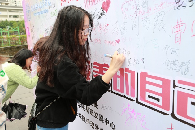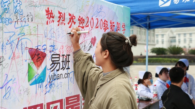 活动中,新生在签名板上写上自己的名字以及对未来期望等,并拍照留恋。一位来自重庆的新同学在接受采访时说:“来到了新的公司,接受新的事物,这对自己是一种成长,就意味着要学会独立,跨出自己的舒适区,学会适应新环境,拥抱新事物。”最后他希望自己能够度过快乐的三年大学时光。现场还进行了抽奖活动,参与同学还得到了易班奖品。