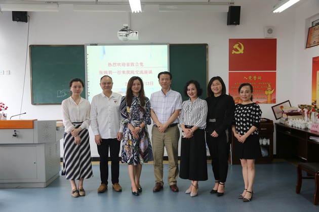5月13日下午,在雅安市政协人资环委主任陈志强陪同下,致公党党员、沃英国际教育有限公司、菁优网总经理张婉莉一行到公司进行交流座谈。太阳集团tyc33455经理王静,太阳集团tyc33455党总支书记姚婕,副经理李燕,教研室主任、附属医院护理部副主任陈俊参加座谈。
