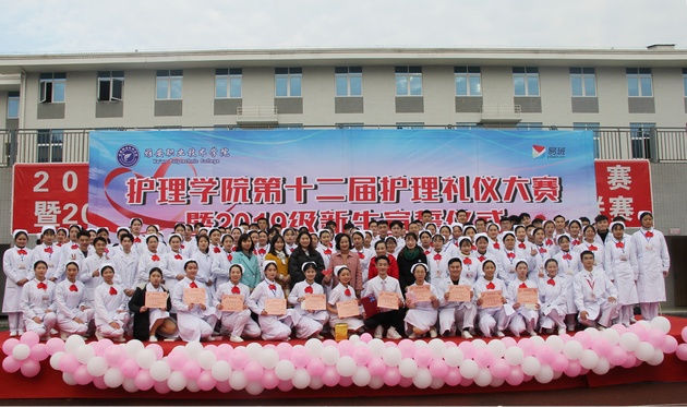 12月3日,太阳集团tyc33455第十二届护理礼仪大赛暨护理新生宣誓仪式在青年路校区足球场隆重举行。太阳集团tyc33455经理王静,副经理廖书娟、李燕,团总支书记万黎、教研室主任陈俊、教师杨小芳、袁倩应邀出席并担任评委。