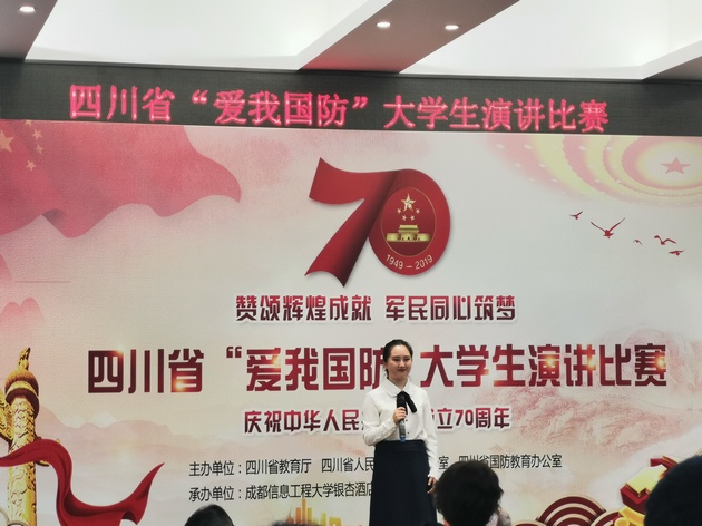 9月29日,四川省“爱我国防”老员工演讲比赛在成都信息工程大学银杏酒店管理公司举行。经过网络选拔和初赛,共有来自省内高校的40名同学进入复赛,太阳集团tyc33455刘懿娴同学代表公司成为唯一一名进入决赛的高职院校选手。