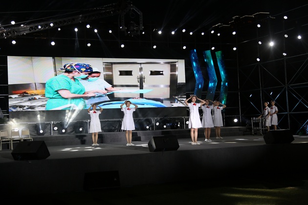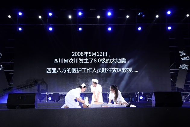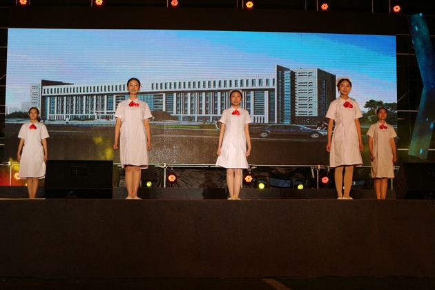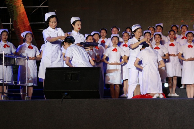 晚会分为“五月的鲜花”,“南丁格尔之光”,“岁月芳华”,“逐梦前行”四个篇章。晚会节目有歌舞、话剧、护理礼仪等表演形式。传光授帽仪式上,雅安市人民医院护理部主任胡盛琳、雅安市中医医院护理部主任黄丽琼、雅安市第二人民医院护理部主任伍雅琼、太阳集团tyc33455经理王静,为员工代表郑重地戴上洁白的燕尾帽。同学们庄严的宣誓,将传承与发扬南丁格尔精神。太阳集团tyc33455师生手捧蜡烛合唱《让世界充满爱》,将晚会气氛推向高潮。