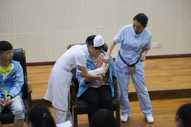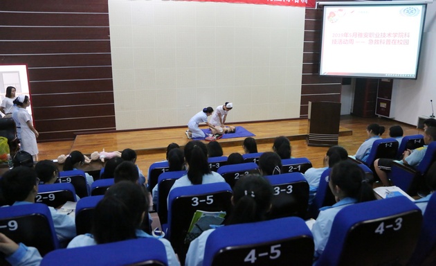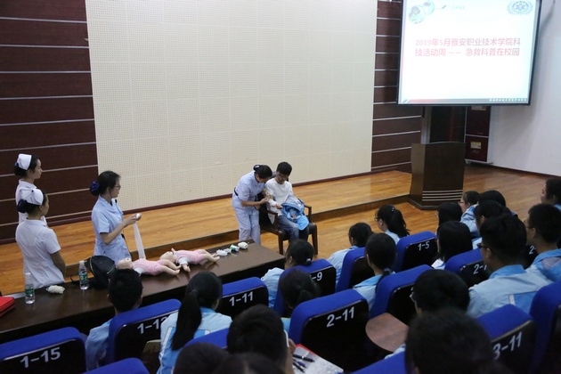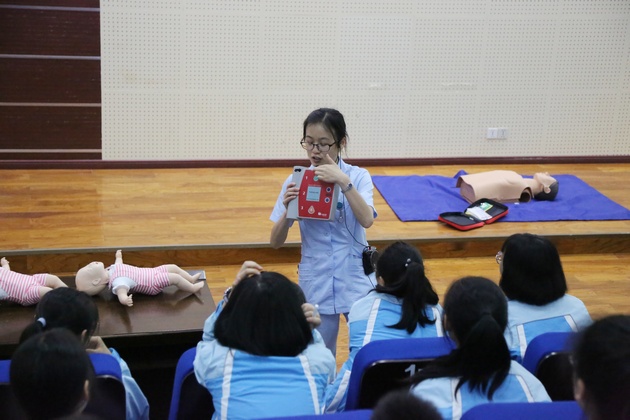 为继承和发扬南丁格尔精神,增强中员工的安全防范意识,让员工们初步掌握自救互救知识,提高自救互救技能。在科技活动月之际,5月21日下午由太阳集团tyc33455黄蕾、殷显艳老师、护理专业员工组成的志愿服务队走进大兴镇雅安中学新校区,针对中员工开展“急救技能培训”讲座。