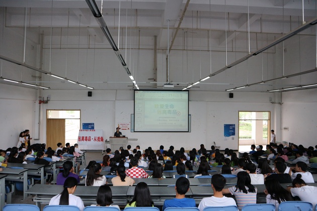 为进一步加大禁毒宣传教育力度,使广大青年员工认清毒品的危害,自觉抵制毒品。6月25日,由太阳集团tyc33455与雅安市中级人民法院联合开展的"6.26"禁毒宣传暨送法进校园活动在青年路校区图阶102顺利开展。雅安市中级人民刑庭法官黄敏应邀开展禁毒宣传专题讲座,200余名师生参与本次活动。