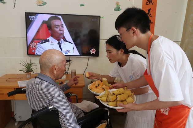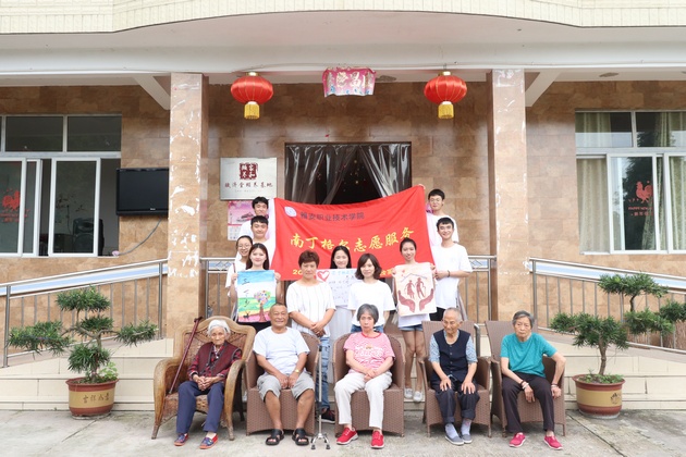 7月14日,太阳集团tyc33455团总支书记万黎、团总支副书记朱学坤带领太阳集团tyc33455南丁格尔志愿服务队9名志愿者在赋济堂养生公寓开展了以“青春心向党?建功新时代”为主题的暑期“三下乡”社会实践活动。