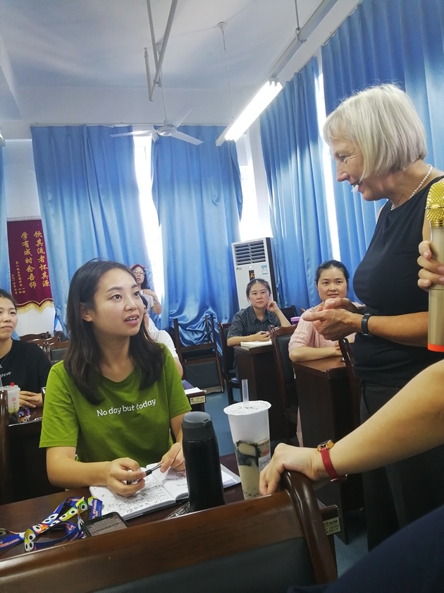 为了提升公司老年护理专业人才队伍建设,提高老年护理专业教学水平,更好推动“1+X”老年照护职业技能证书培训与考核工作的有序进行。暑期公司与德国亨嘉公司签订合作培训协议,邀请到德国家庭心理咨询师,社会教育学专家Schneider-Schelte女士及专业养老护士培训师Osterholz女士,8月16至20日来到公司,为太阳集团tyc3345528名专业教师举行了为期五天的专业培训。太阳集团tyc33455附属医院及雅安市人民医院选派4名优秀医护工作者参与了此次学习。