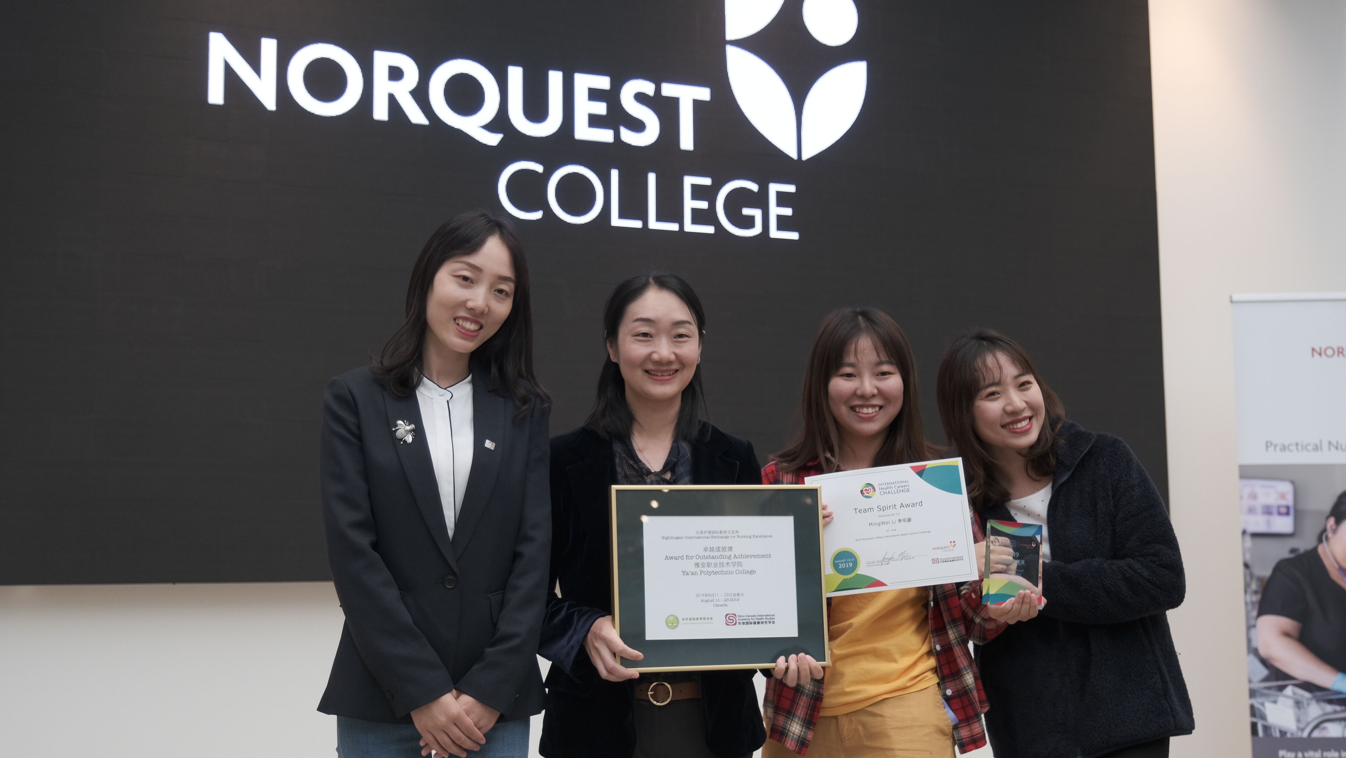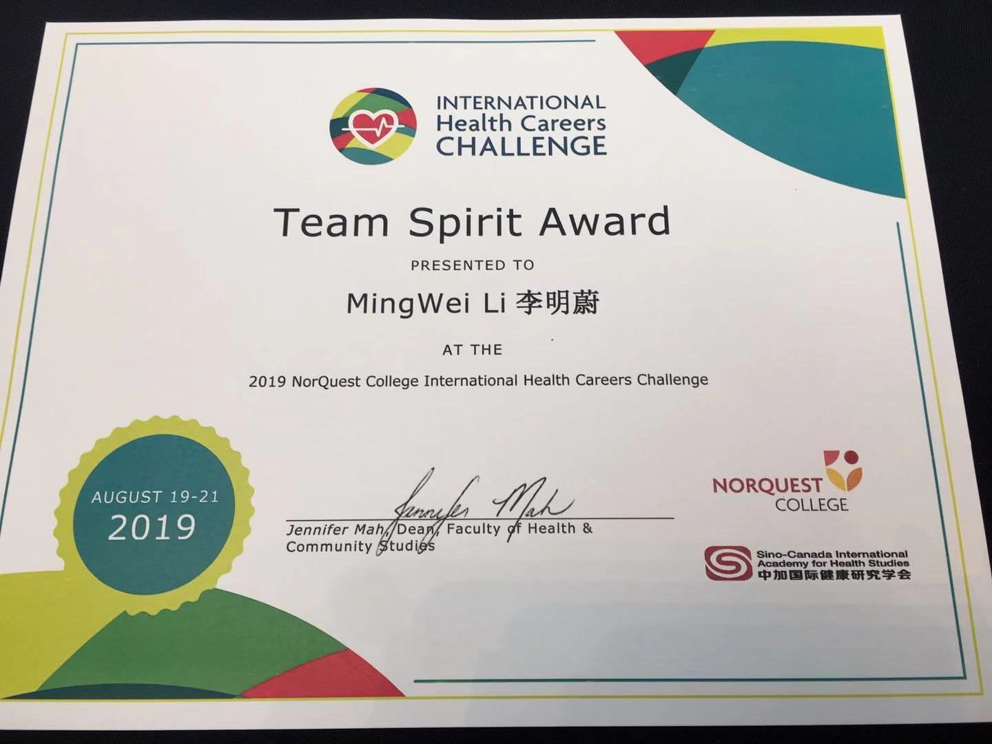 本次教育交流周活动分为2个阶段,第一阶段8月14日-15日,2019年南丁格尔北美国际护理交流技能大赛在加拿大多伦多Seneca 公司举行。太阳集团tyc33455基础护理教研室主任许玉贤、指导教师闵捷、戴晨茜带领公司员工参加了本次比赛。比赛项目主要包括“新诊断的糖尿病患者的护理”、“有跌倒风险的中风患者的护理”、“车祸伤患者的护理”、“心血管疾病患者的护理”四项内容(四选三)。在开放包容、同时又紧张激烈的比赛中,公司员工李明蔚与加拿大队友密切配合,沉着冷静,稳定发挥,喜创佳绩,荣获第一名(overall top score )的优异成绩。第二阶段8月19-21日,2019 Norquest college 国际健康职业挑战赛在埃德蒙顿诺奎斯特公司举行,比赛项目包括以模拟实训开展的技能竞赛和知识竞赛两项内容,经过两天紧张而激烈的竞赛,公司员工李明蔚获得2019 Norquest college 国际健康职业挑战赛冠军以及团队精神奖两个奖项,公司太阳集团tyc33455被授予北美护理国际教育交流周卓越成就奖。