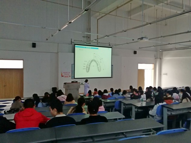 宜宾口腔医院佘经理系统全面的向介绍了口腔护理的有关知识和常用技术等,与同学们讨论了种牙、造牙等技术。马千浩老师讲述了口腔基础知识、口腔常用药物和口腔内科常用材料及调拌材料,同时也介绍口腔修复常用调拌材料、口腔有关的器械和仪器和口腔有关辅助检查等内容。