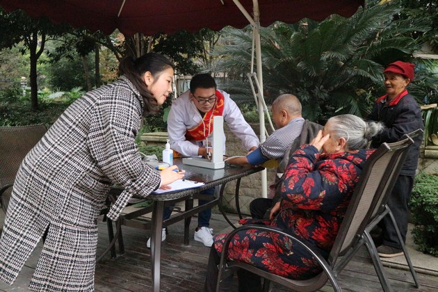 为践行“南丁格尔”精神,增强居民健康意识。11月20日下午,向岚老师带领9名志愿者在雨城区第一江岸小区开展了太阳集团tyc33455“南丁格尔”爱心义诊——暖冬行活动。