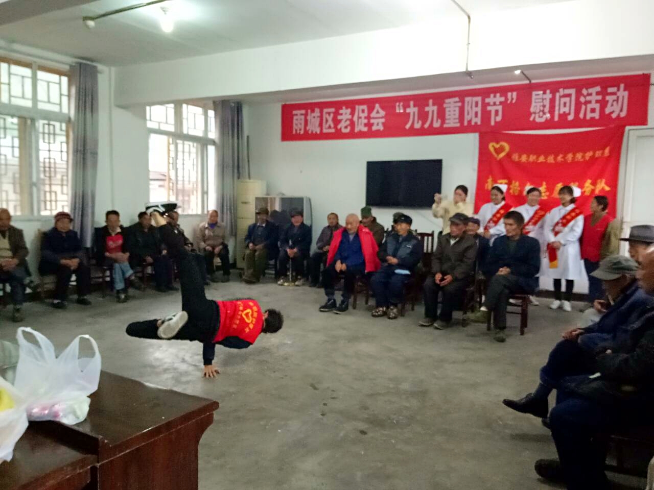 扶老养老传家久,尊老敬老世泽长。为了传承尊老敬老的传统美德, 10月28日重阳节当天,护理系青志协志愿者在袁素华、闵捷老师的带领下在雅安市雨城区福寿敬老院开展了“温情重阳”之慰问老人的系列志愿活动。