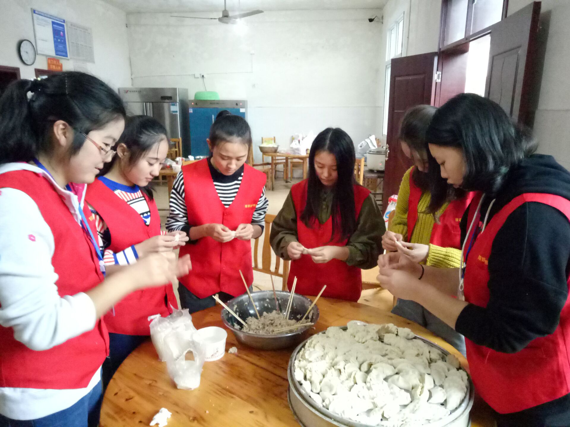 细雨绵绵,仍挡不住青年志愿者的热情,活动在一片欢声笑语中顺利展开。志愿者为老人们量血压、测血糖,了解他们基本的生活状况;为老人打扫卫生,倾听他们讲述过去的往事;并为老人们带来了精心准备好的文娱节目,与老人互动,其乐融融,演出以一曲《父亲》向在座的老人表达了感恩之情。最后,志愿者为老人们准备了丰盛的饺子宴,盘盘饺香,温暖重重。
