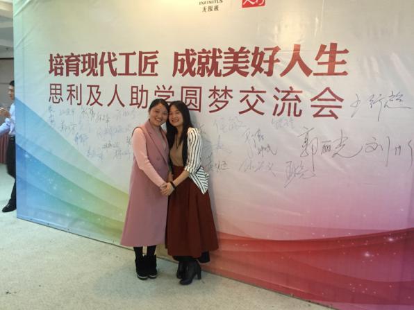 我系13级思利及人助学圆梦班班主任饶玲于2016年12月27日和员工处副处长任敏到广州江门参加了“培育现代工匠,成就美好人生”思利及人助学圆梦交流会。本次参会来自15个省的代表,与思利及人基金会主办方共同总结与分享思利及人助学圆梦的项目成果和经验,并通过这个多方参与、搭建的平台,对项目未来的发展提出意见,任敏和饶玲两个老师加入“思利及人助学圆梦公益联盟”。