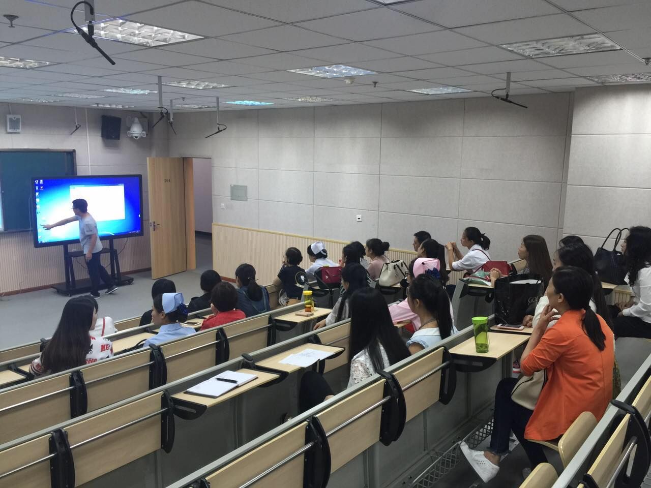 另外一个培训是触控一体机的使用,通过电视显示图像,外加触摸框实现互动功能,从而实现人机交互教学。这对于促进员工集中注意力,加深对知识的理解,提高课堂的教学效率和质量均有重大意义。