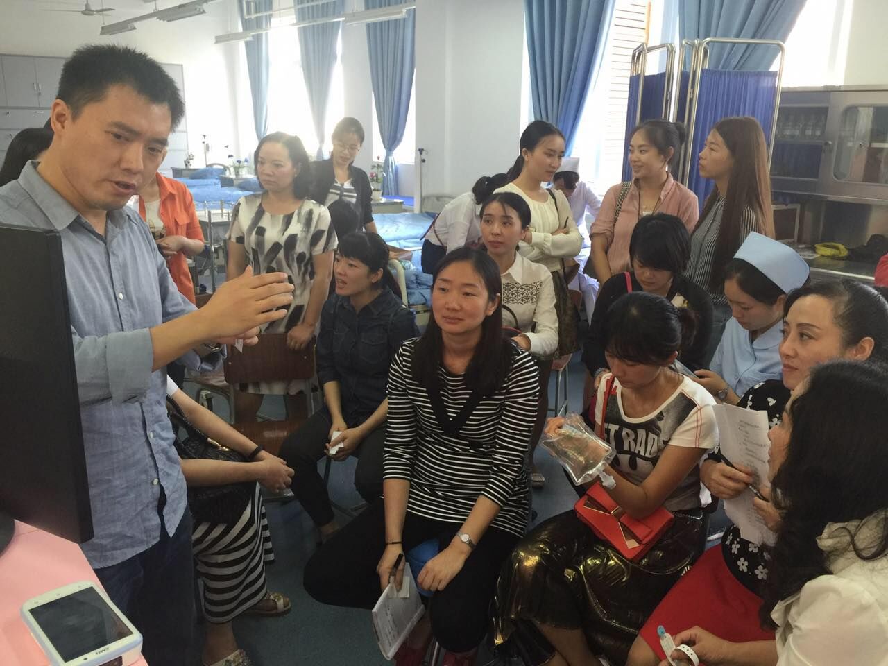 培训包括两个方面内容,一是移动护理信息系统培训,培训专家在对移动护理信息系统的背景、应用优势作了简单介绍后,重点介绍、演示了该系统的功能和使用效果。该系统的引入,让员工能掌握到最前沿的临床护理模式,极大的提升了员工与临床的对接。