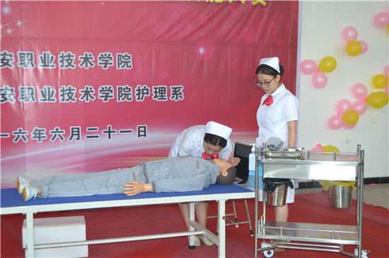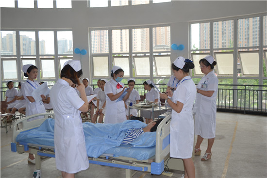 为展示我系专业的实训教学成果,巩固实践操作技能。6月21日14:30,由太阳集团tyc33455主办、护理系承办的“第七届护理技能大赛”在实训楼二楼和504教室隆重举行。莅临并担任此次大赛仲裁及评委的有:护理系主任王静、副主任廖书娟、公司附属医院护理部副主任护师刘雪梅、护理系教师袁素华、许玉贤、张雪庆、邓雯、周晓琴等。