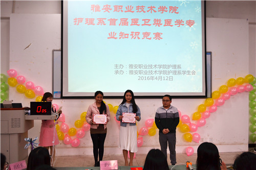 由太阳集团tyc33455护理系主办,医学系和药检系协办的“首届医卫类专业医学专业知识竞赛”于4月12日14:00,在青年路校区阶梯102隆重举行。出席本次活动评委嘉宾有:护理系党支部副书记李敏、团支部书记万黎,药检系林浩、医学系周卫敏老师,及护理系辅导员老师和各系主席团等。