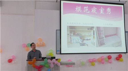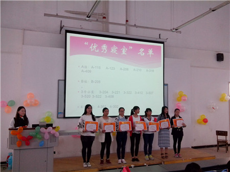 我系优秀文明寝室表彰大会每学期开展一次,根据上一学期员工检查、老师检查和宿管老师检查的结果综合测评,评选出优秀典型寝室,目的是促进同学们养成良好的寝室卫生习惯,提升老员工文明素养。