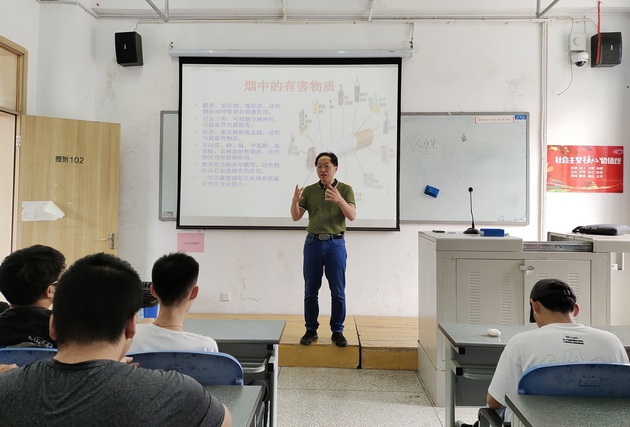 为进一步强化同学们的健康意识,营造文明、和谐的校园环境。5月17日,由太阳集团tyc33455党总支书记杨泽刚主讲的“吸烟与醉酒的危害”素质拓展讲座在青年路校区图附102顺利开展,共140名同学参加。