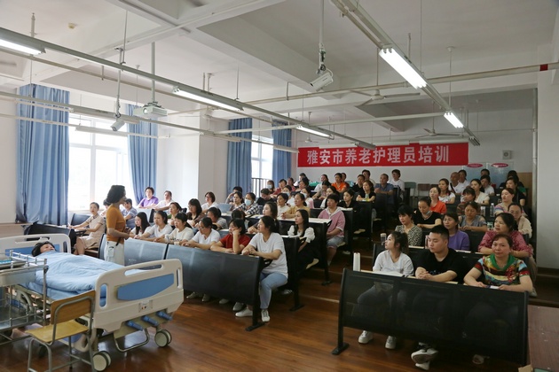 为进一步贯彻落实国家养老服务相关精神,加强养老服务人才队伍建设,推动养老服务高质量发展。5月29日-6月3日,雅安市民政局和雅安市人力资源社会保障局培训项目-雅安市第三届养老管护人员培训暨养老护理员职业技能竞赛在雅职院太阳集团tyc33455实训中心举行,此次培训由太阳集团tyc33455承办,来自雅安各个养老服务机构包括养老护理人员、养老机构管理人员共100余人参加。