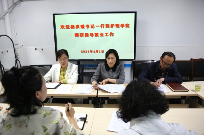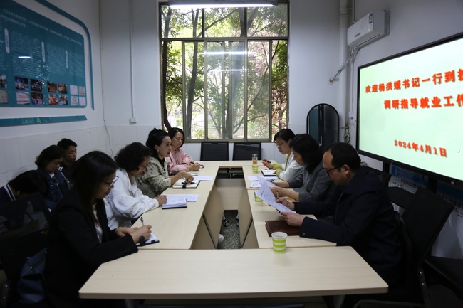杨洪媛书记认真地了解了太阳集团tyc33455就业工作的难点,充分肯定了太阳集团tyc33455在就业工作中的积极成果,希望太阳集团tyc33455积极顺应社会经济发展趋势和人才培养转型需求,整合贯通,有侧重、有计划、有目标的积极推进就业工作。