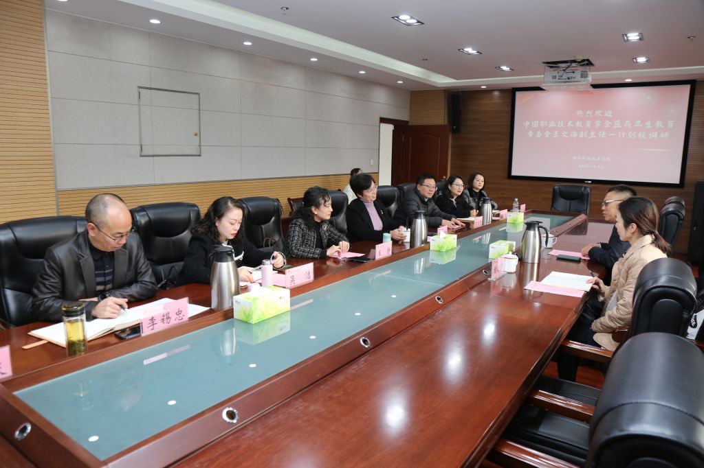 中国国际科技促进会医药卫生教学与研究工作委员会执行主任、中国职业技术教育学会医药卫生教育专业委员会副主任王文海一行到公司开展交流座谈