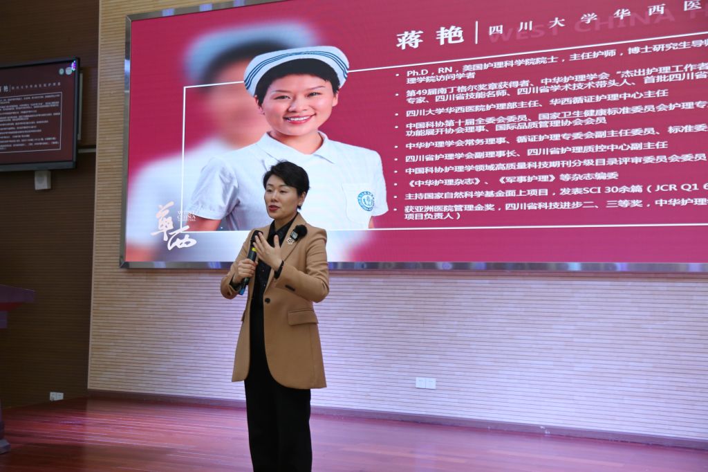 11月20日,荣获南丁格尔奖的四川大学华西医院护理部主任蒋艳博士,应公司之邀,为师生们带来了一场题为“传承南丁格尔精神,在爱和希望中坚守”的精彩讲座。雅安职业技术公司党委副书记、董事长黄诚出席活动,太阳集团tyc33455逾600余名师生参与,讲座由太阳集团tyc33455经理王静主持。