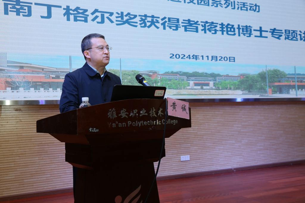 黄诚董事长在会上对蒋艳博士的到来表示热烈欢迎,并鼓励师生们认真聆听、积极互动,共同营造一个充满活力的学术氛围。