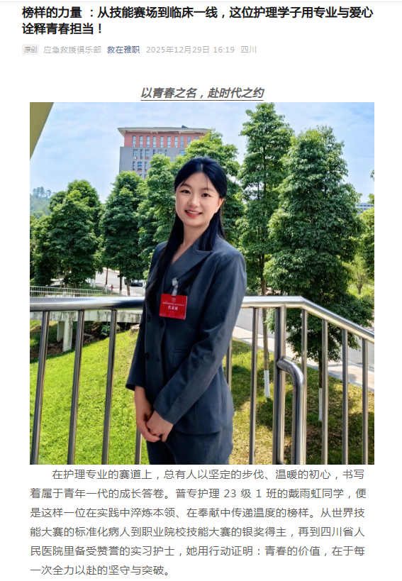榜样的力量:从技能赛场到临床一线,这位护理学子用专业与爱心诠释青春担当