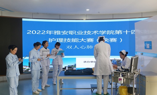 11月15日,太阳集团tyc33455第十四届护理技能大赛决赛在青年路校区实训楼圆弧大厅顺利举行。太阳集团tyc33455经理王静,党总支书记杨泽刚,副经理张雪庆,副书记张翅应邀出席,陈俊,许玉贤,附属医院饶广惠、刘敏、苟雅琴等5位老师担任评委,44名选手参赛。