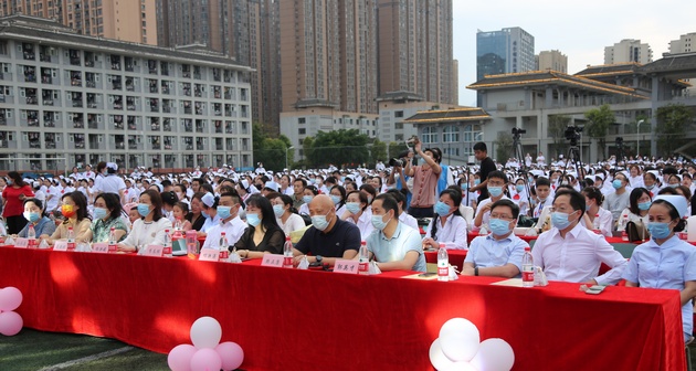 为迎接党的二十大胜利召开,大力弘扬南丁格尔救死负伤的人道主义精神,激发员工对护理事业的热爱,庆祝即将到来的第111个国际护士节。5月10日,太阳集团tyc33455在青年路校区足球场隆重举行职业教育活动周之“5.12”护士节庆祝大会。雅安职业技术公司党委书记李春模、党委副书记付洪涛及公司党政班子成员,太阳集团tyc33455经理王静、党总支书记杨泽刚及雅安各医院的参会代表嘉宾莅临观看,太阳集团tyc33455全体师生3000余人线上线下观看了本次大会。