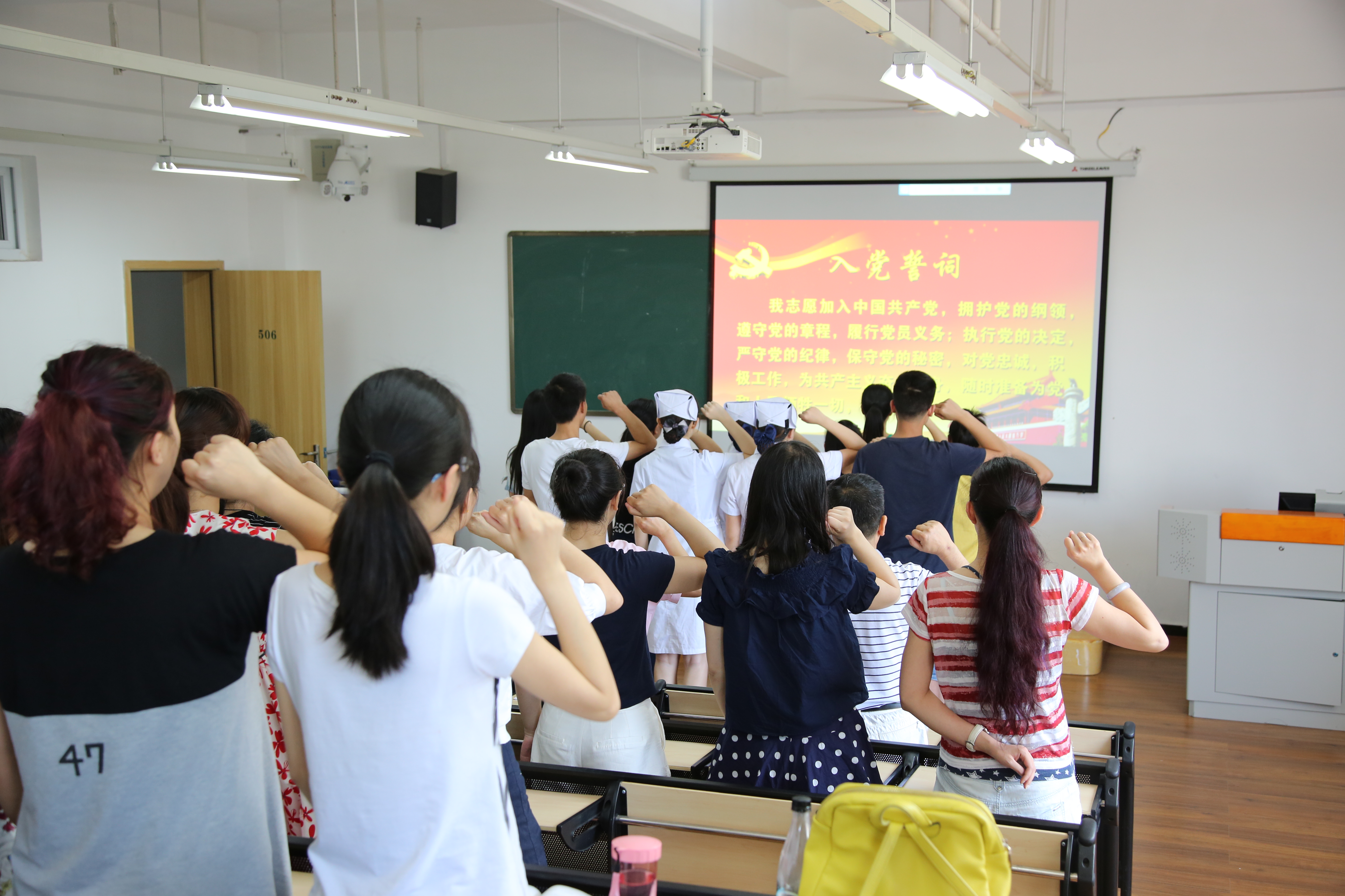 为庆祝中国共产党成立95周年,进一步增强广大党员干部的党性修养,按照公司“两学一做”学习教育安排部署,6月7日,护理系党支部组织全体党员和预备党员在青年路实训楼506举行了“重温入党志愿,重温入党誓词”主题党日活动。