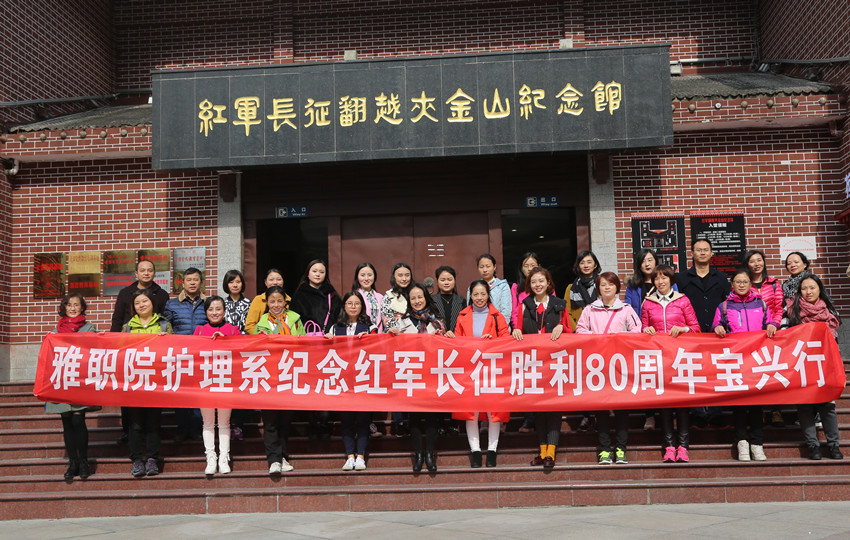 首先,在护理系主任王静、党支部副书记李敏的带领下,全系教师怀着激动的心情来到宝兴县红军长征翻越夹金山纪念馆,参观红军长征翻越夹金山留下的历史文物,学习红军不怕牺牲、勇往直前、坚韧不拔、不屈不挠、众志成城的伟大革命精神。