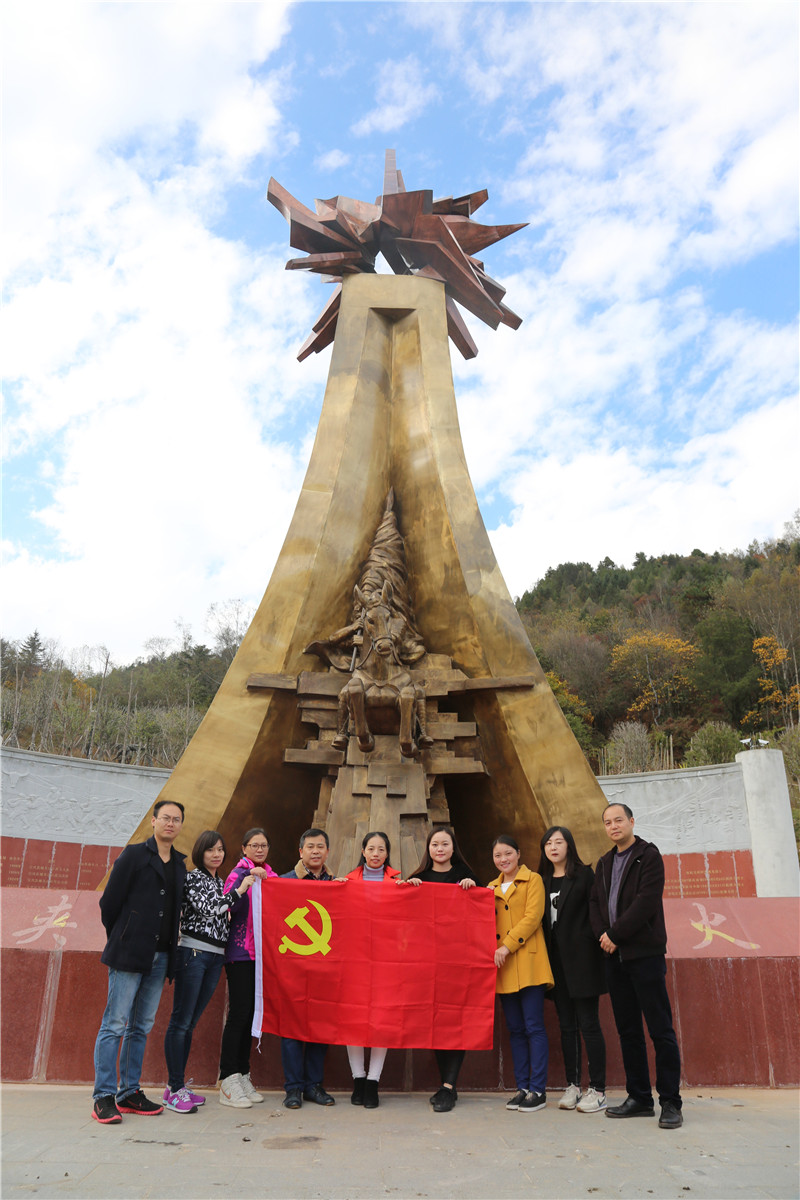 随后,全系教师沿着长征革命烈士们当年走过的路线,来到夹金山下的红色根据地硗碛,红军长征在此留下了革命的火种、书写了可歌可泣的历史史诗。金色的太阳照耀着中国工农红军长征翻越夹金山纪念碑闪闪发光,在纪念碑前,全体党员教师重温入党誓词,面对鲜红的党旗,庄严的宣誓声回荡在山间,全体党员教师再次受到心灵的洗礼和震撼,更清楚的认识到身为中共党员的职责所在。