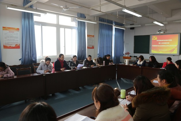 12月22日下午,第八党支部在青年路实训楼607室召开了专题组织生活会和民主评议党员,全体党员参加了会议。纪检监察审计处处长杨红同志到会督导。会议由党支部书记姚婕同志主持。