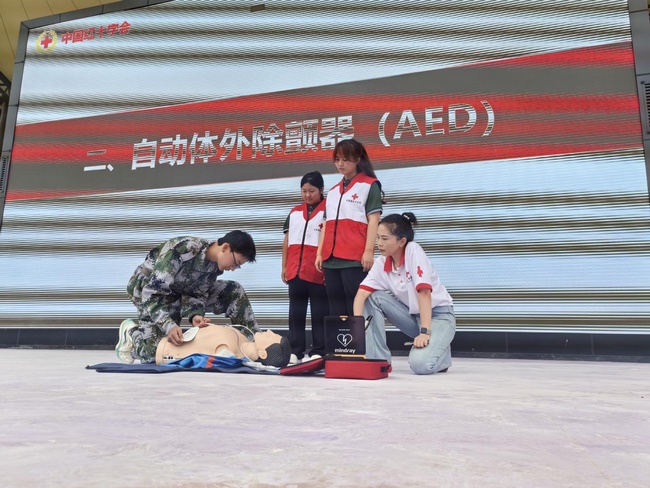 培训现场,志愿者们通过理论讲解与模拟实操相结合的方式,深入浅出地阐述了急救的“黄金四分钟”的重要性。在心肺复苏和AED使用教学环节,利用人体模型逐步演示了判断意识、呼救求助、胸外按压、开放气道、人工呼吸以及AED电极片粘贴与电击除颤的全过程,并强调了操作中的注意事项和规范动作。同学们凝神聆听,现场气氛严肃而认真。